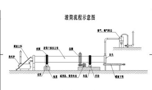 干燥的濕物料由皮帶輸送機或斗式提升機送到料斗,然后經(jīng)料斗的加料機通過加料管道進入加料端。加料管道的斜度要大于物料的自然傾角,以便物料順利流入干燥器內(nèi)。干燥器圓筒是一個與水平線略成傾斜的旋轉(zhuǎn)圓筒。物料從較高一端加入,載熱體由低端進入,與物料成逆流接觸,也有載熱體和物料一起并流進入筒體的。隨著圓筒的轉(zhuǎn)動物料受重力作用運行到較底的一端。濕物料在筒體內(nèi)向前移動過程中,直接或間接得到了載熱體的給熱,使?jié)裎锪系靡愿稍?,然后在出料端?jīng)皮帶機或螺旋輸送機送出。在筒體內(nèi)壁上裝有抄板,它的作用是把物料抄起來又撒下,使物料與氣流的接觸表面增大,以提高干燥速率并促進物料前進。載熱體一般分為熱空氣、煙道氣等。載熱體經(jīng)干燥器以后,一般需要旋風除塵器將氣體內(nèi)所帶物料捕集下來。如需進一步減少尾氣含塵量,還應經(jīng)過袋式除塵器或濕法除塵器后再放排放。